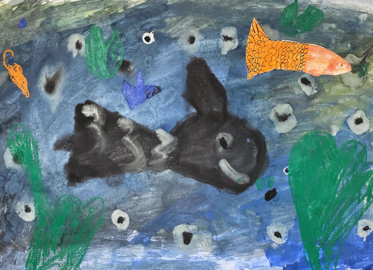 van plaatjes en filmpjes. Samen weten we een heleboel over het leven onder water. We proberen de ideeën in onze hoofden beeld te geven. Het gaat niet om
